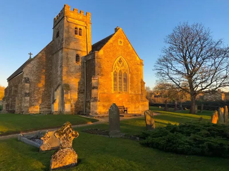 The path from the village leads northwards past the old rectory, over a brook and up to the church which is built on a small promontory commanding beautiful views across the Windrush valley. Where the path crosses the brook there is an iron gate; traditionally a local bride must be lifted over this gate by her groom, although it has been known for some assistance to be provided by the best man!